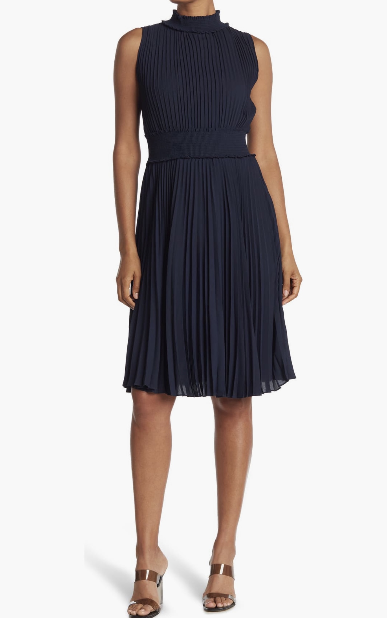 Another sleeveless turtleneck dress for the win- except this pleated design is more elevated, put together, and ideal for both the office or events for all seasons. Not to mention, the sophisticated deep blue tone would compliment fair skin tones, as well as medium to deep.