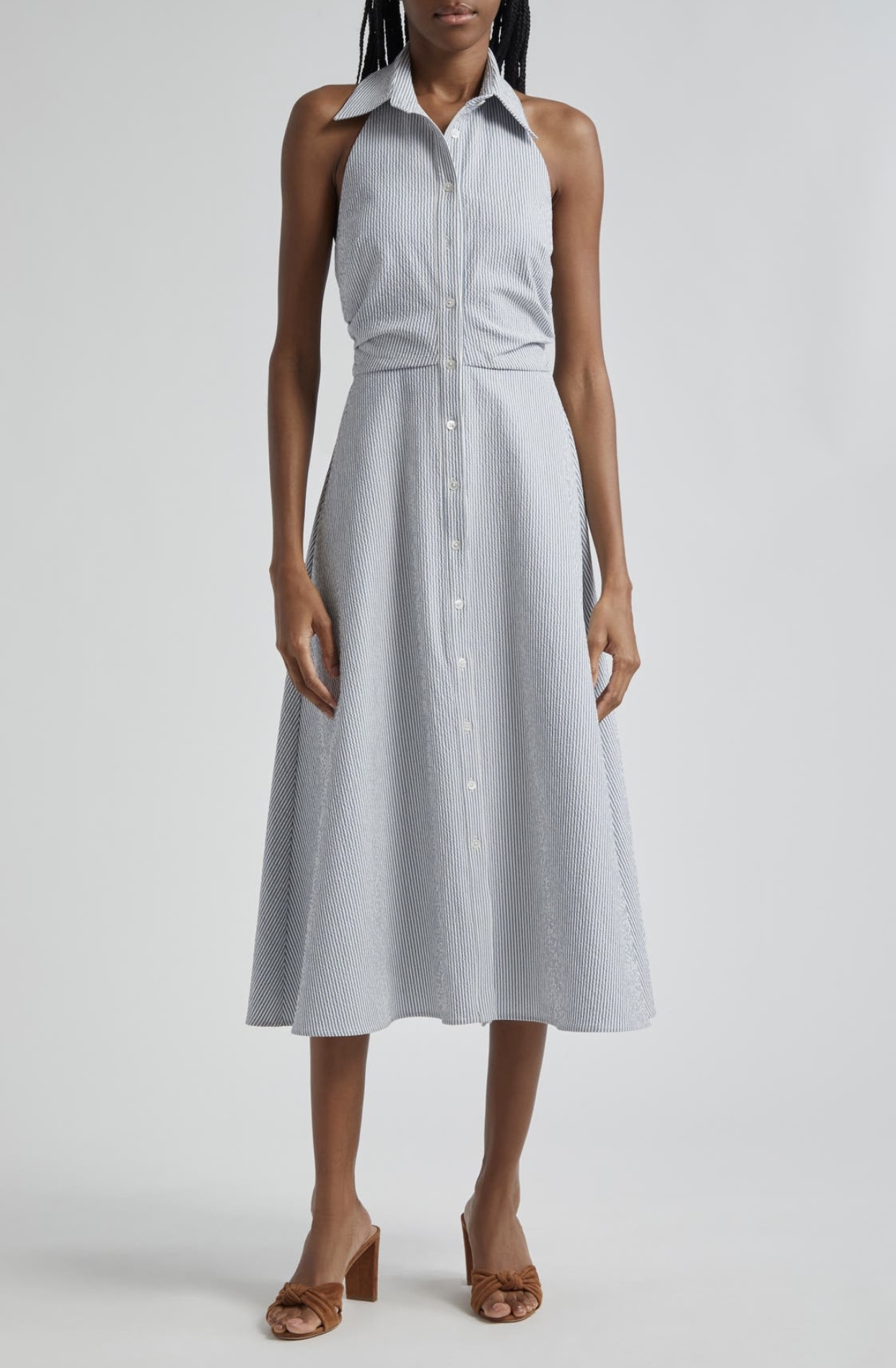 If it’s any dress that screams summer and spring, it’s this one. Veronica Beard is another solid brand for the working woman who appreciates transitional, versatile pieces that also cater to creative work environments with more relaxed dress codes. The pattern on this shirtdress elevates the piece, especially with a halter touch, and can be paired with a white blazer to cover up the open back if needed.