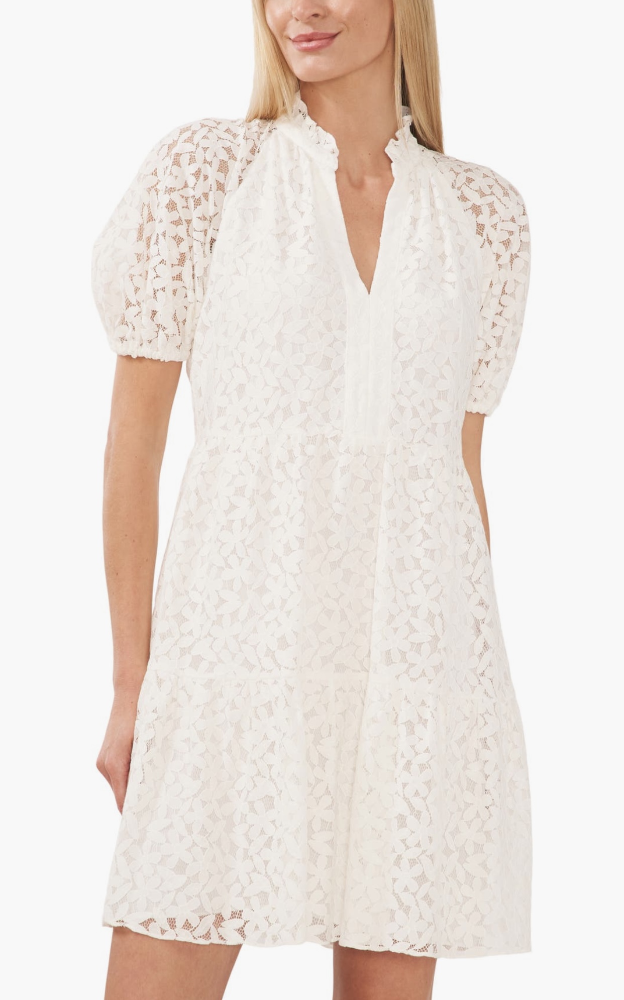 CeCe Puff Sleeve Babydoll Lace Minidress