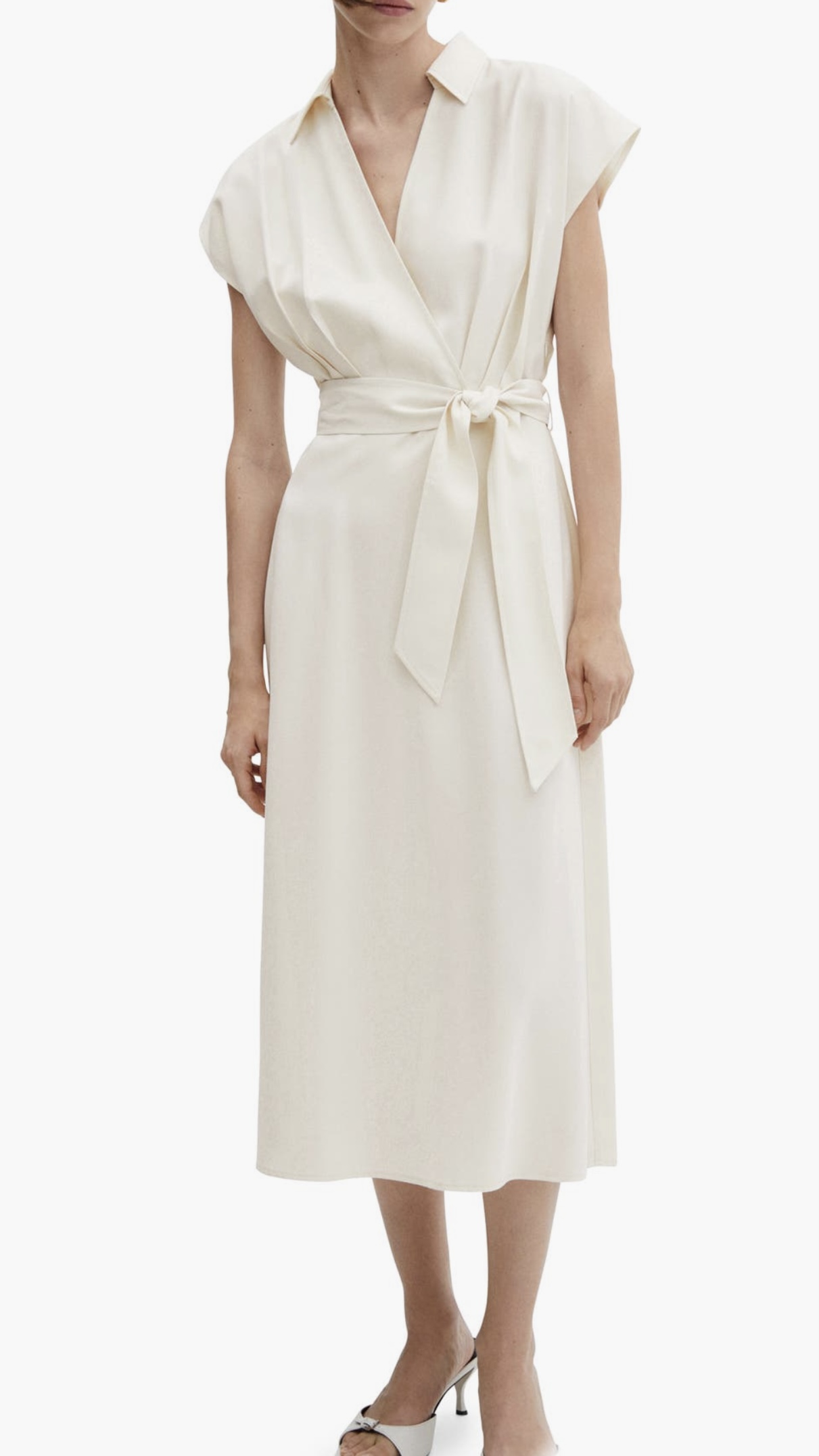 MANGO has become the go-to for chic, contemporary designer looks, without the designer price tag- Victoria Beckham did a collab with them for a reason. Wrap dresses are ideal for work environments to dinner plans, and more occasions in between. The collar, length, belt, sleeves, v-neck, are all details that contribute to its classy and elegant style, in a versatile off-white/cream tone.