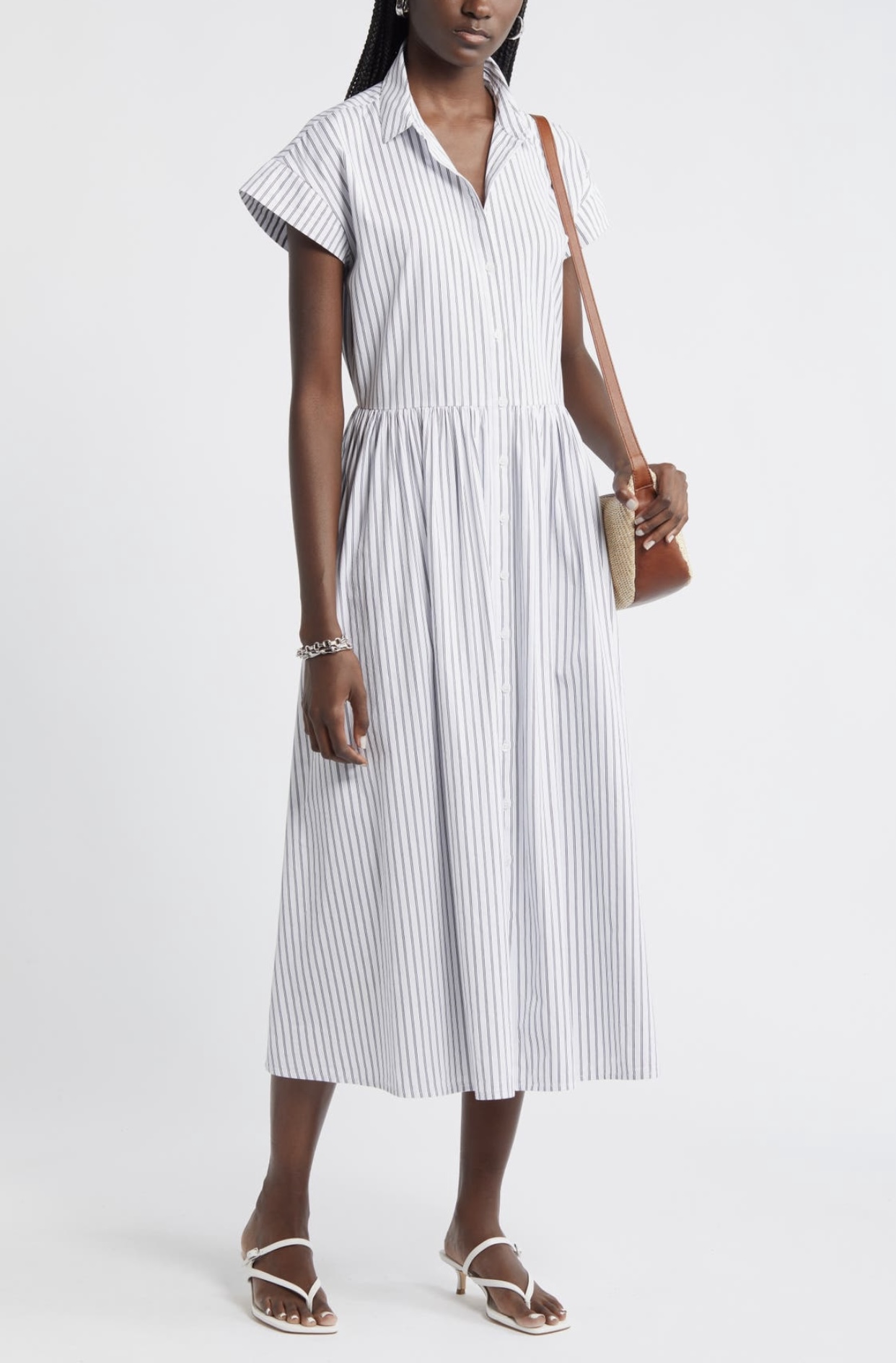 Nordstrom Drop Waist Button Front Cotton Midi Dress